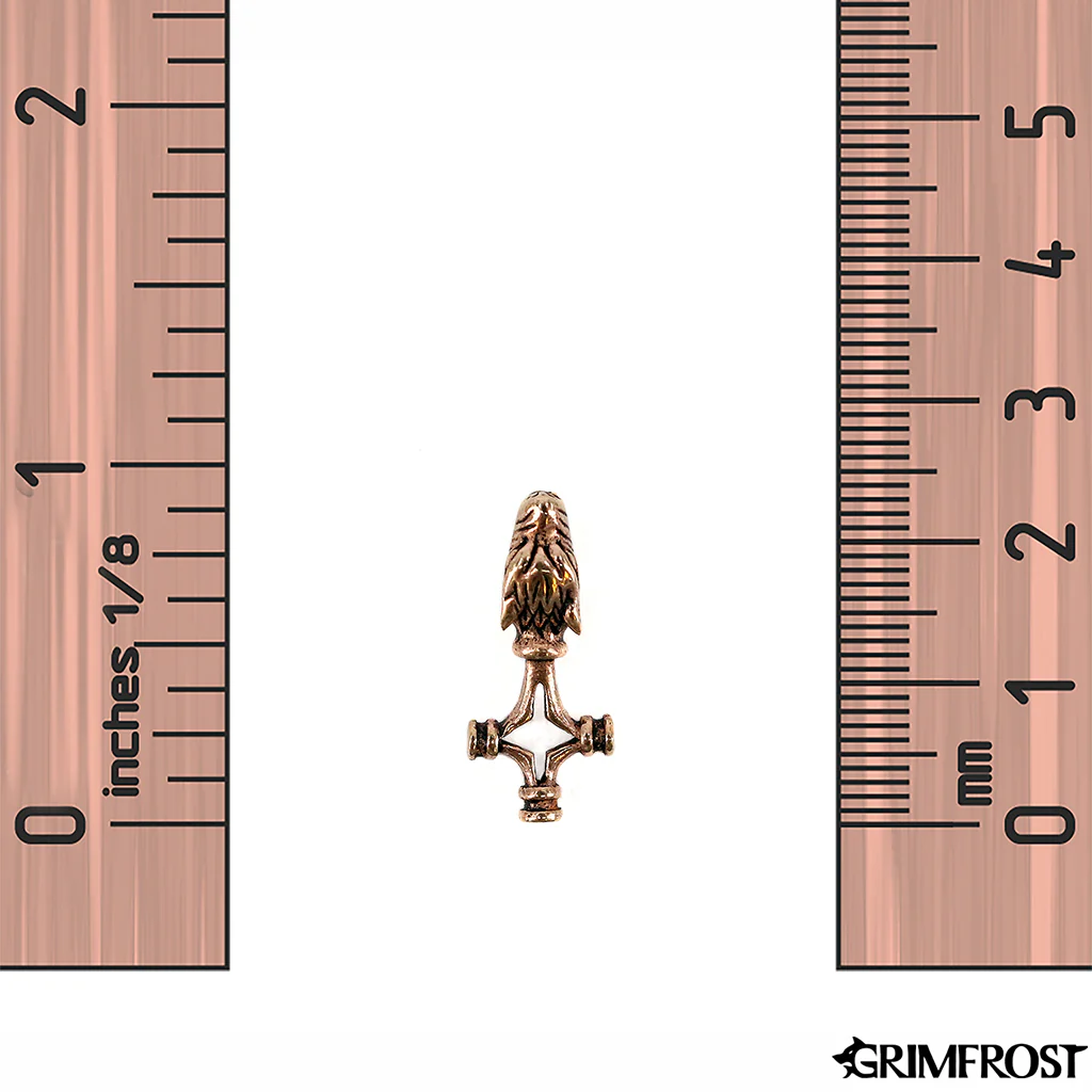 Reproduction of an Icelandic Thor's Hammer in solid bronze, with a wolf biting onto the chain or cord. The original find is dated to the 900s.Â